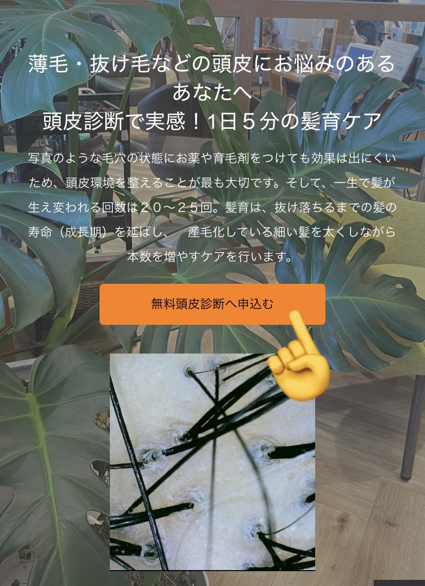 ※髪育サポートコース申込みの際も【無料頭皮診断】をお申込みください