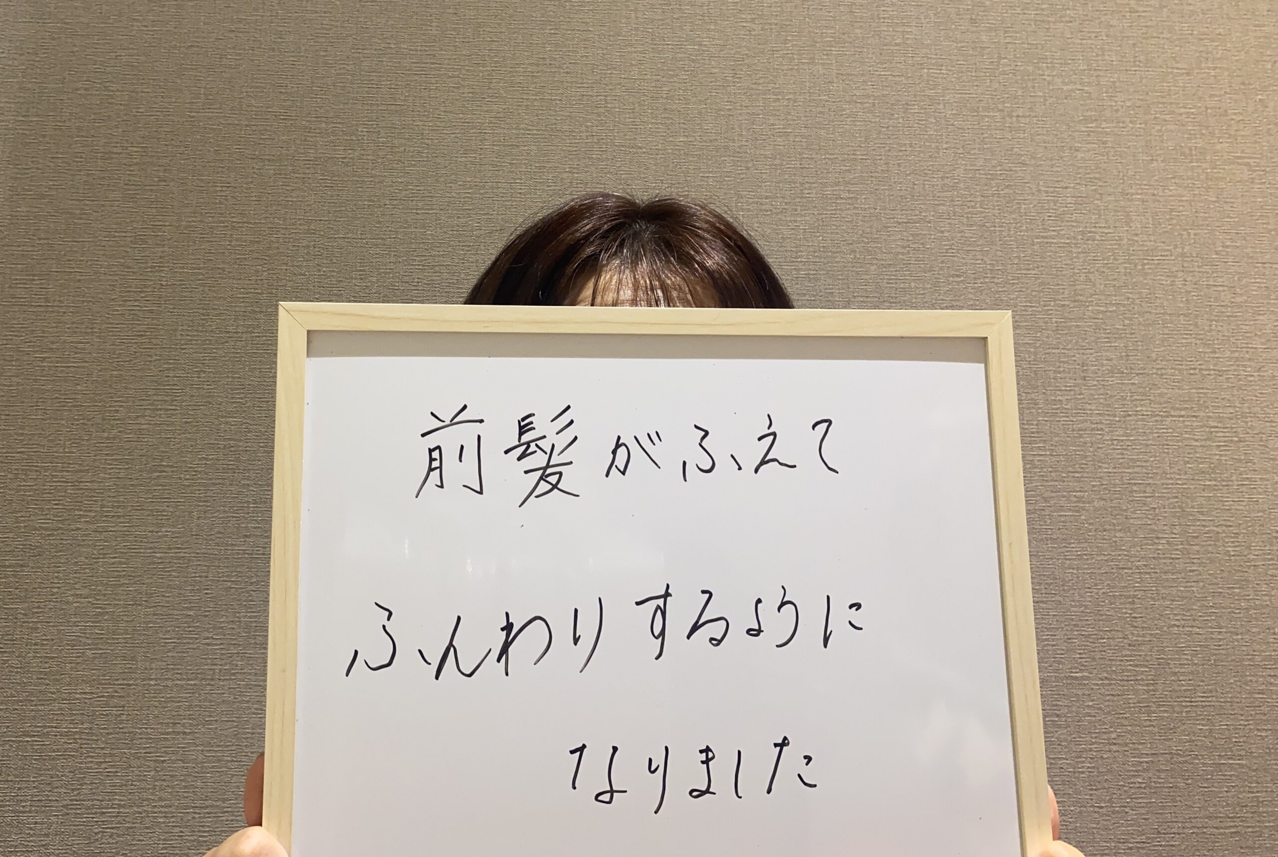 髪の悩みはいっぱいあって、若い時からの白髪でカラーはずっとしてますし、遺伝かな薄毛もあるし、1年くらい前から円形脱毛ができ、帽子を被らないと外に出られなくなりました。 ウイッグを考えていた頃に、広告を見て思いきって通うことにしました。 まだ...